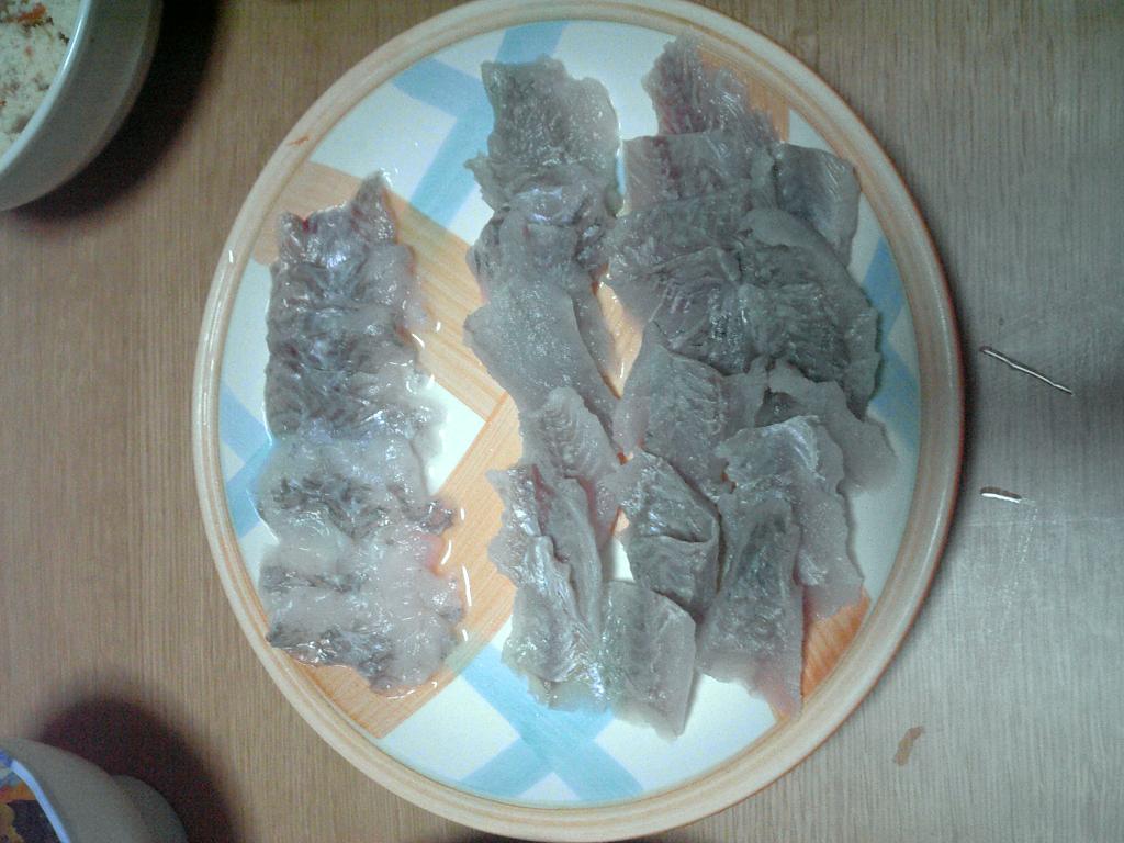 舌平目の刺身の味なのだけど、コリコリとした食感とモチモチした