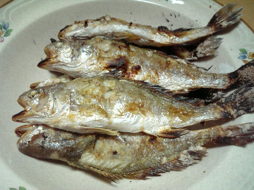 塩焼きにしたイシモチ6匹達。(器が適当なのはスルーしてね☆)